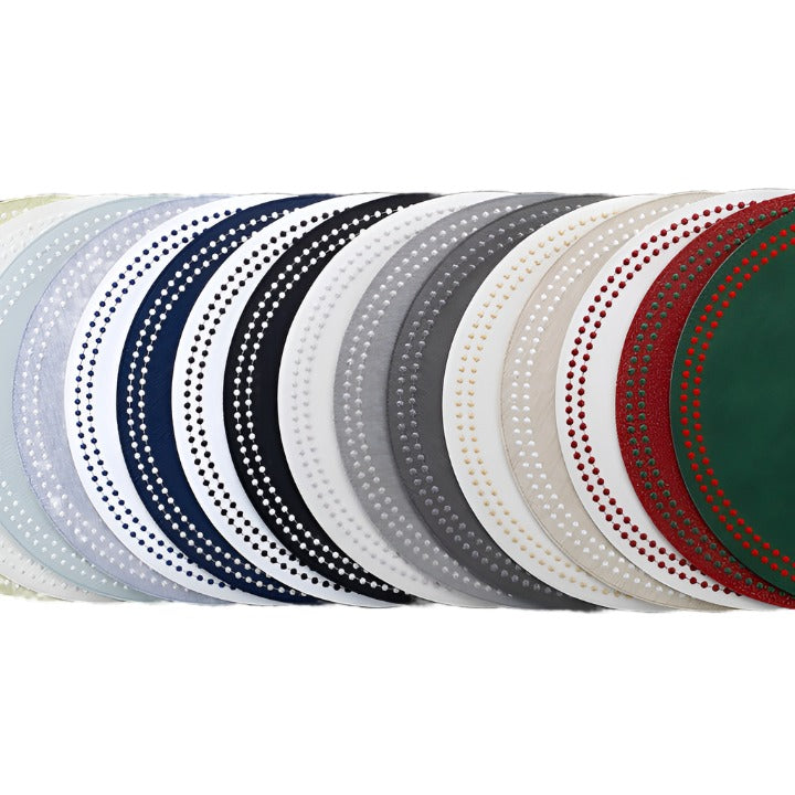 Individual redondos con puntos bordados con efecto perla en el borde.