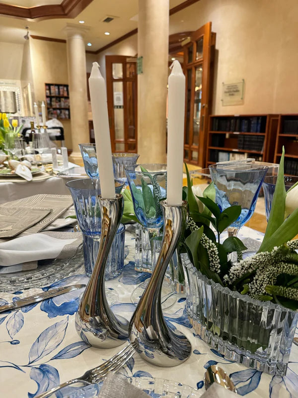 Este candelabro es clásico en su imponente forma plateada, pero ingenioso gracias a su dramático cuerpo sinuoso. Su forma de elevarse casi parece desafiar la gravedad. Comparte varias cualidades con su homónimo: es imponente, audaz y llamativo.