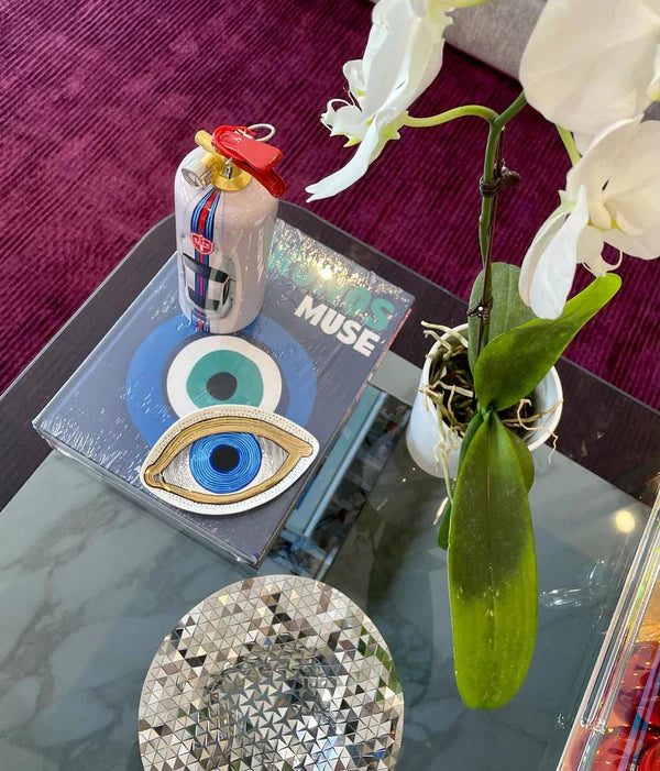Elaborada en elegante porcelana, esta bandeja azul celeste con un borde dorado la hace perfecta para cualquier mesa con estilo. Nuestra bandeja con forma de ojo es perfecta para guardar pequeños tesoros, añadir un toque chic a cualquier superficie o incluso lucirse como decoración de pared (¡se recomienda usar adhesivo de doble cara para colgar platos!).
