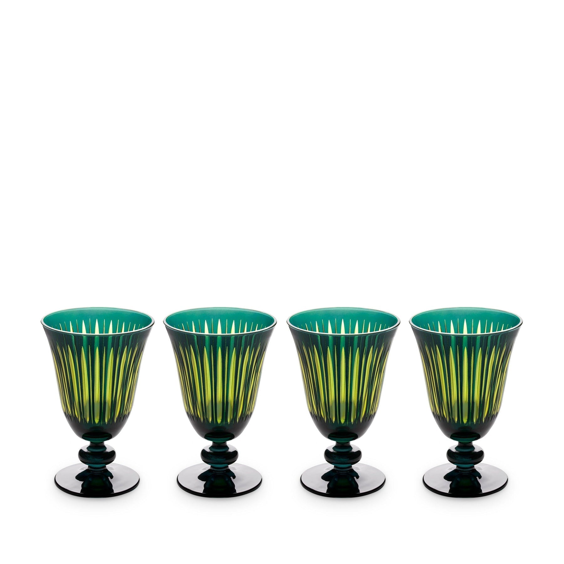 Una colección de cristalería con combinaciones de colores audaces, cortada y decorada a mano para reflejar la luz de manera juguetona. Disponible en Púrpura, Ámbar y Burdeos.