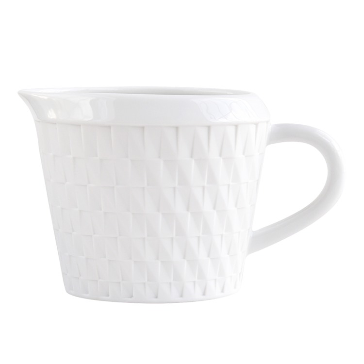 El delicado diseño de esta nueva colección combina diversas influencias: los efectos de luz de los biombos japoneses de papel de arroz, el arte del origami, el trenzado y el encordado de los muebles de los años 50, sin olvidar los gráficos 3D que ofrecen las nuevas tecnologías. El resultado es un sutil efecto sin precedentes de un patrón rigurosamente geométrico, tomado con un impulso retorcido. Grabado en el borde de los platos y en el exterior de las distintas piezas de la colección, es la luz la que revela la alternancia de acabados mate y brillante, creando un resplandor vibrante que realza la blancura de la porcelana.